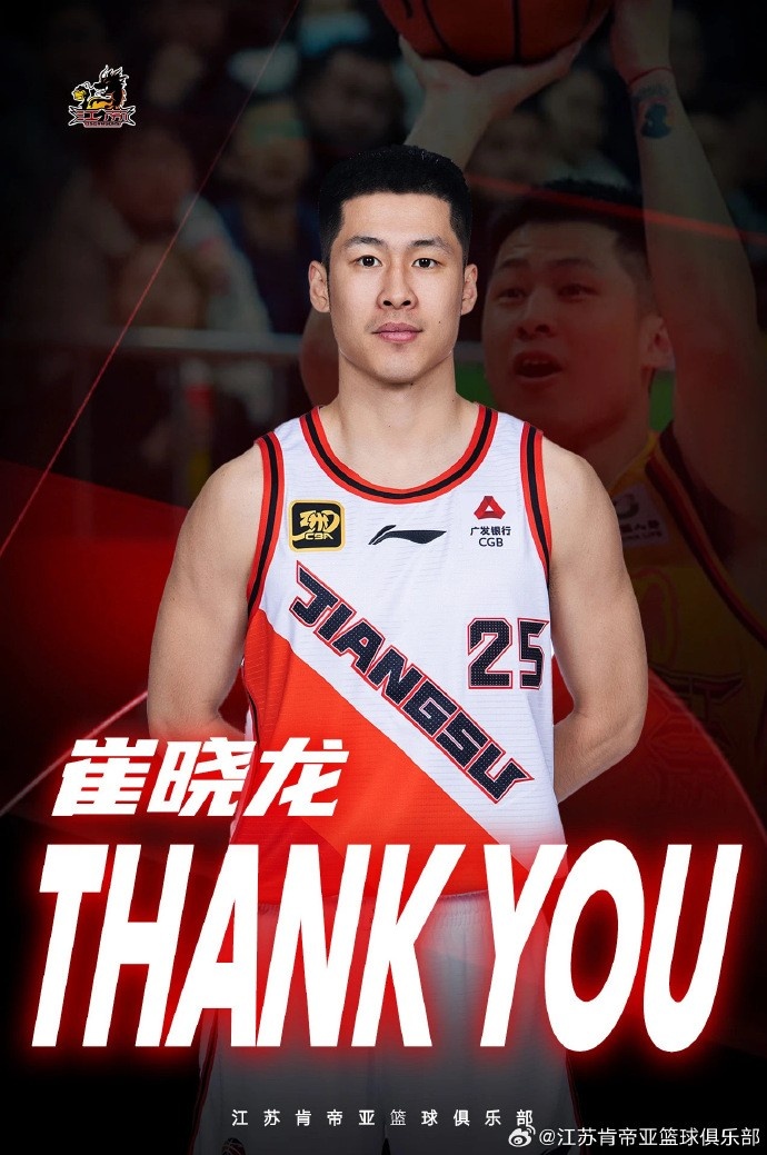 【官宣】经江苏肯帝亚篮球俱乐部与上海久事大鲨鱼俱乐部友好协商,最终达成双方交易,原江苏肯帝亚球员崔晓龙正式转会上海久事大鲨鱼篮球俱乐部,原上海久事男篮球员刘正清正式转会江苏肯帝亚篮球俱乐部,同时江苏肯帝亚获得2025年CBA选秀大会第二轮总第30顺位(原上海久事)的选秀权。